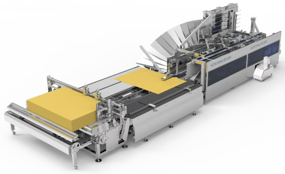 Robot yükləmə və boşaltma sistemi ilə birləşdirilən F2590 Ağıllı Qutu Qatlama Maşını, sənayedə ilk texnoloji nailiyyətlər vasitəsilə idxal olunan avadanlıqların inhisarını qıraraq, mebel qablaşdırmasının avtomatlaşdırılması üçün yüksək qiymətə malik lokallaşdırılmış həlli təmin edir.